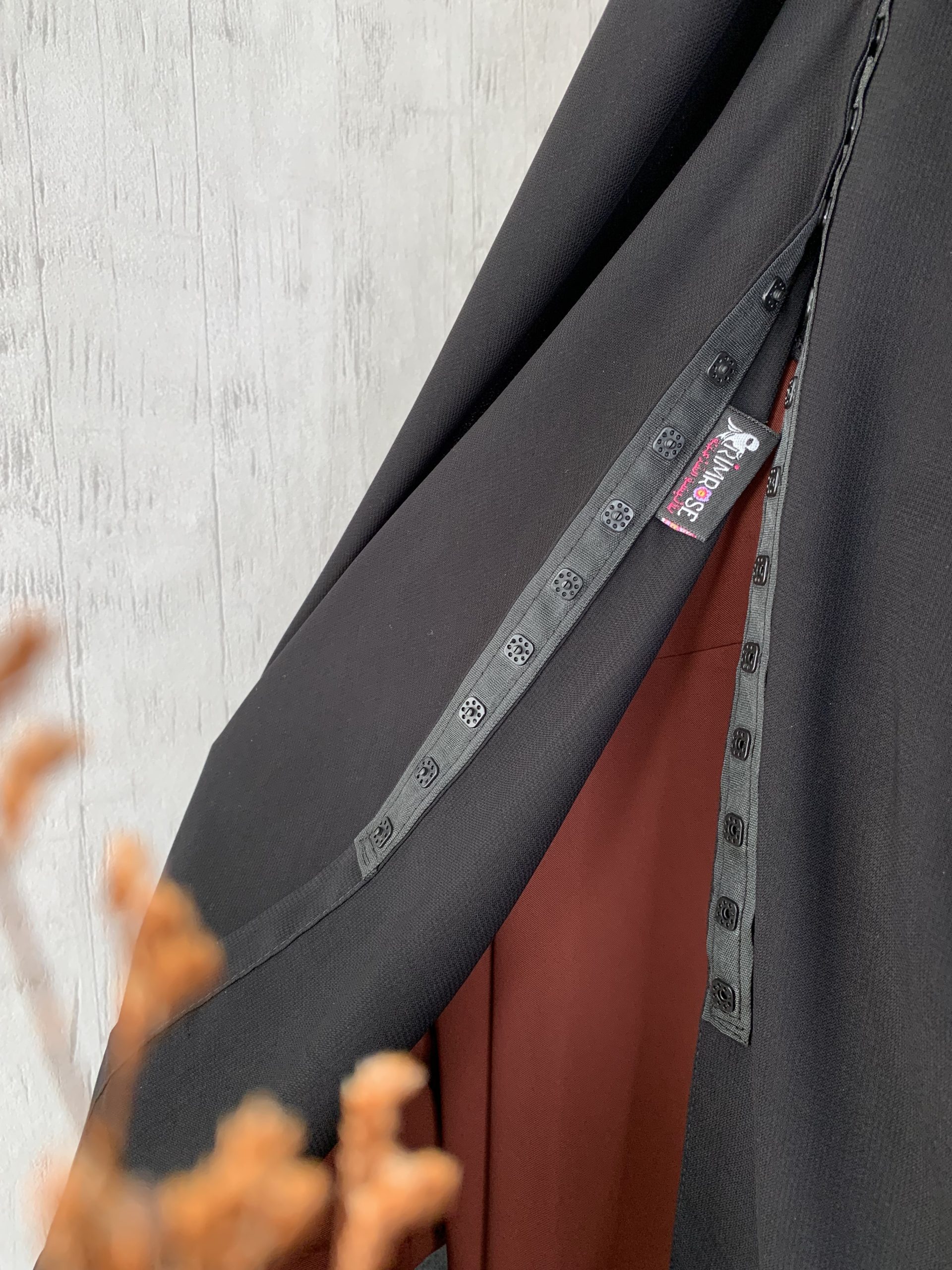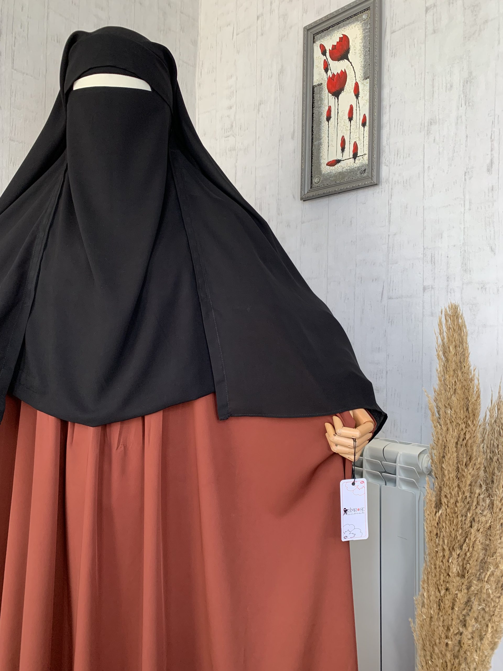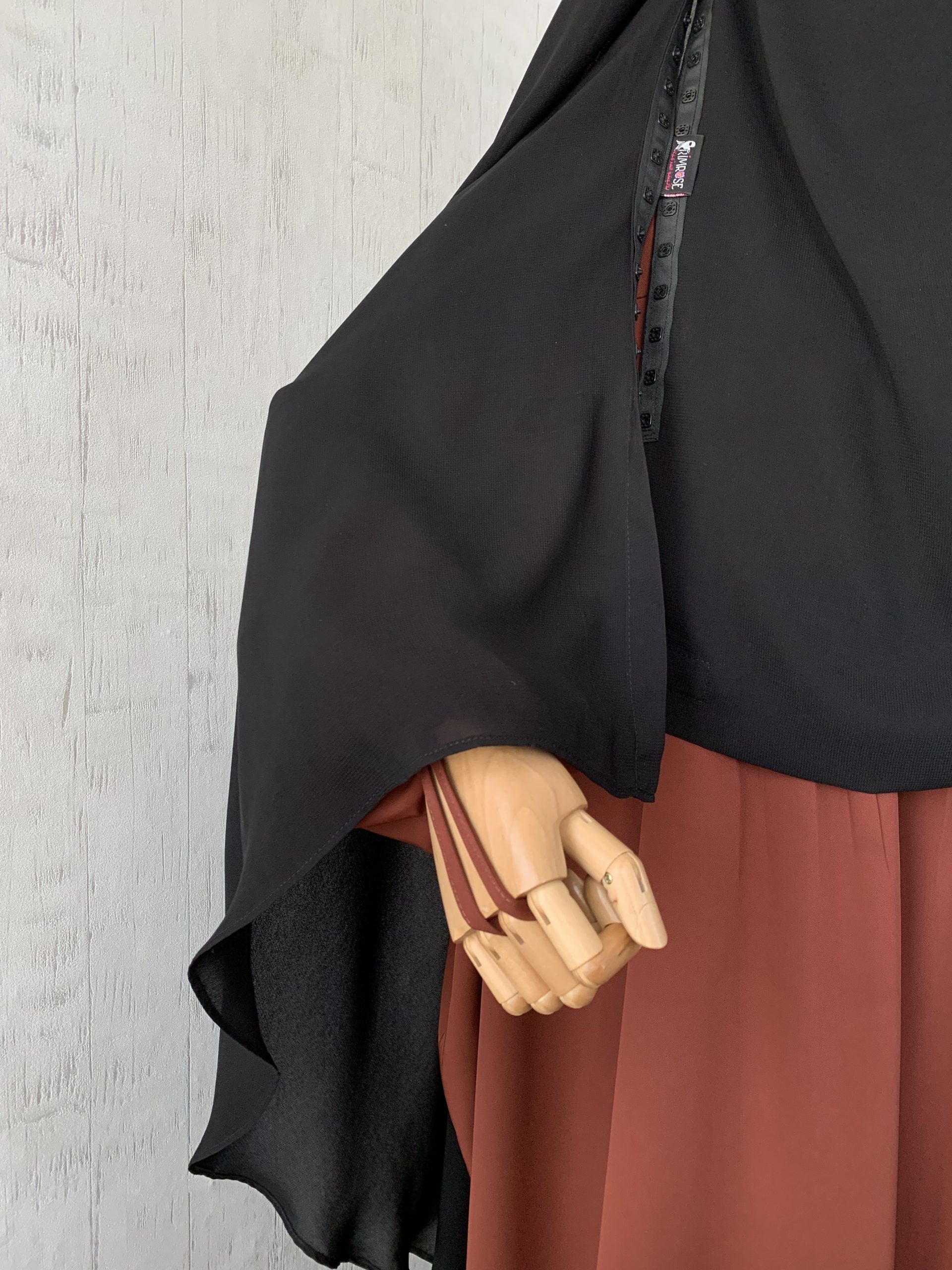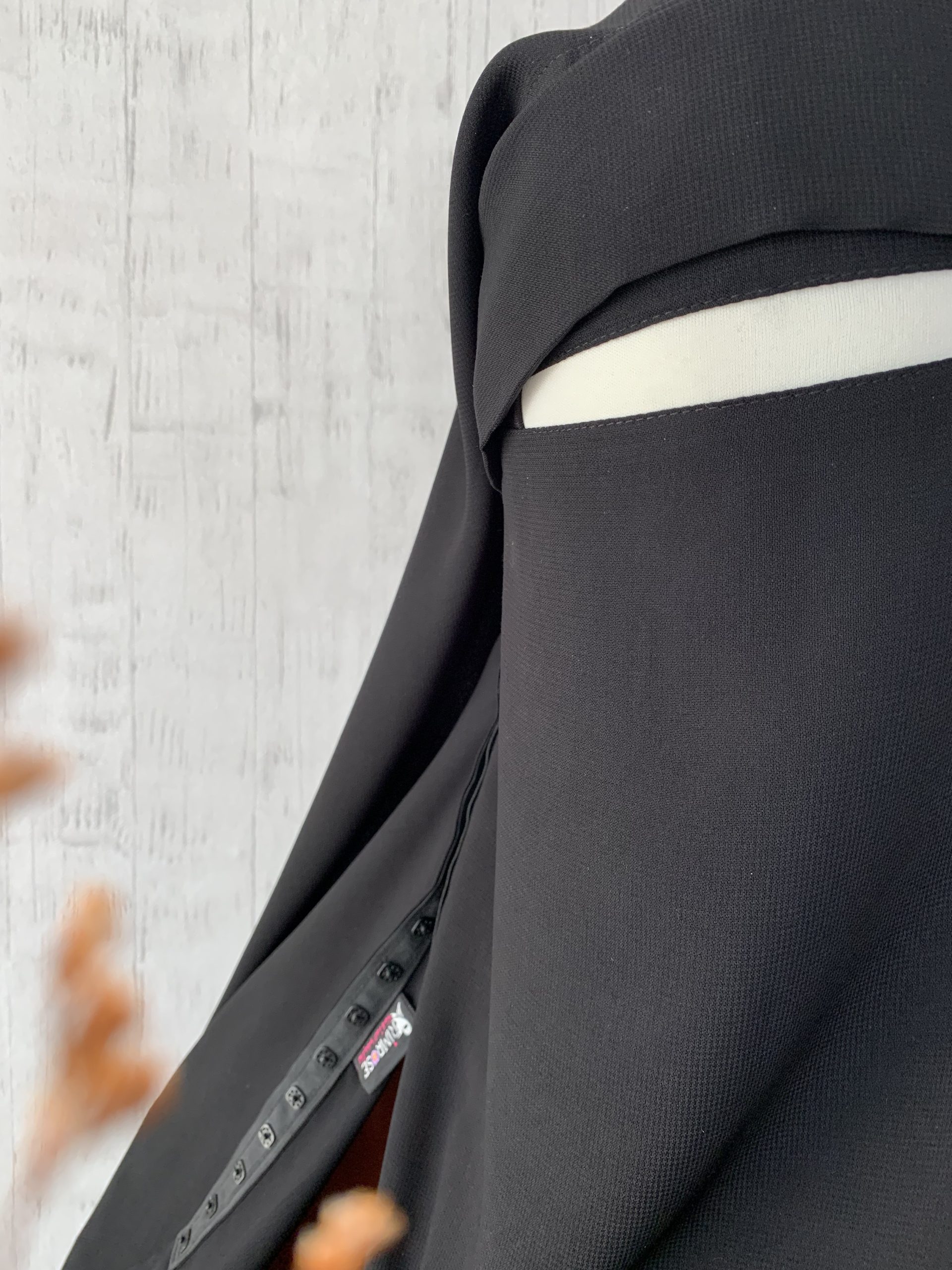 الستار بمروحة واحدة خلفية بشكل دائري من الأسفل و شريط من الأزرار البلا ستسكية في جانبي النقاب
