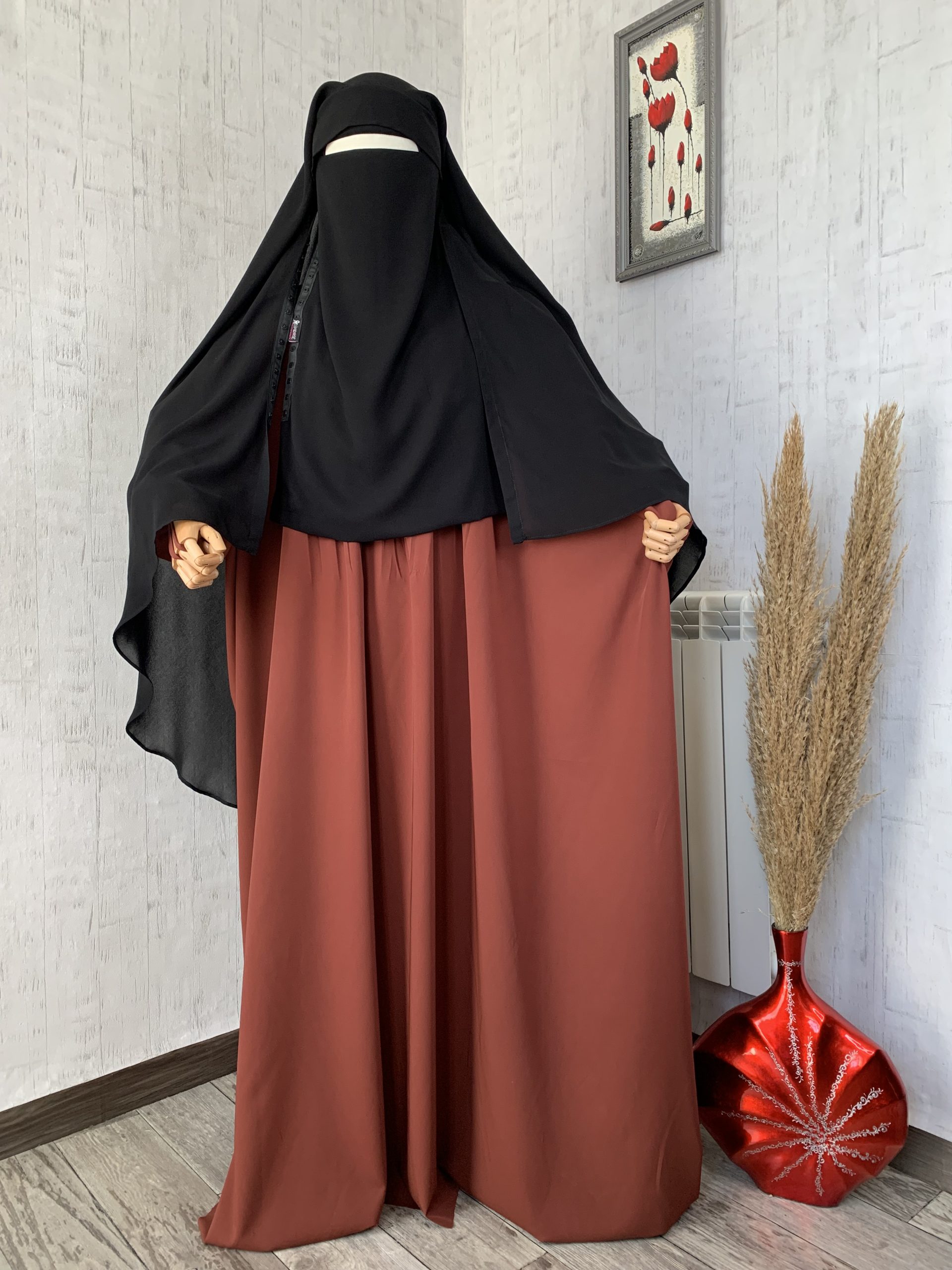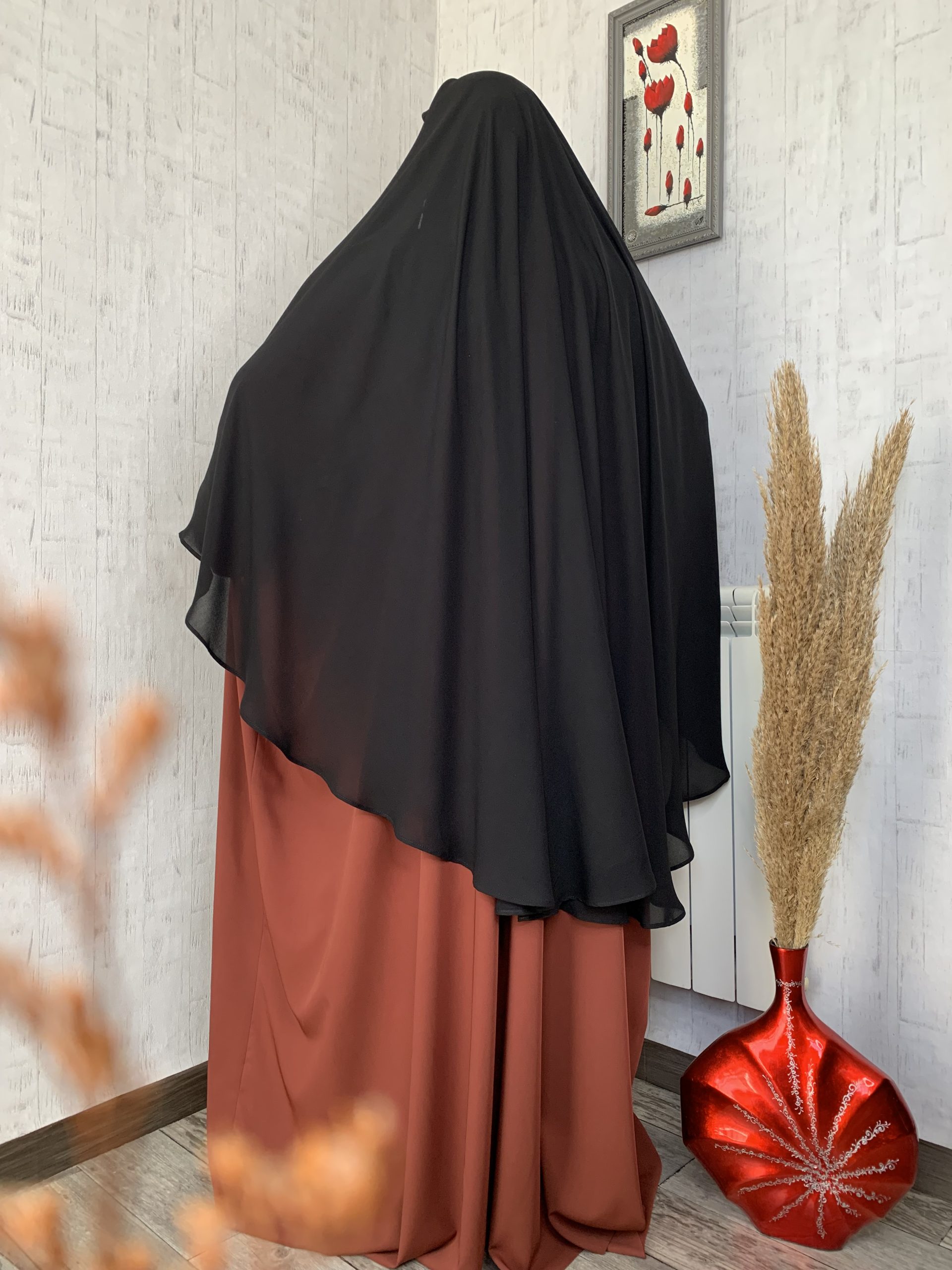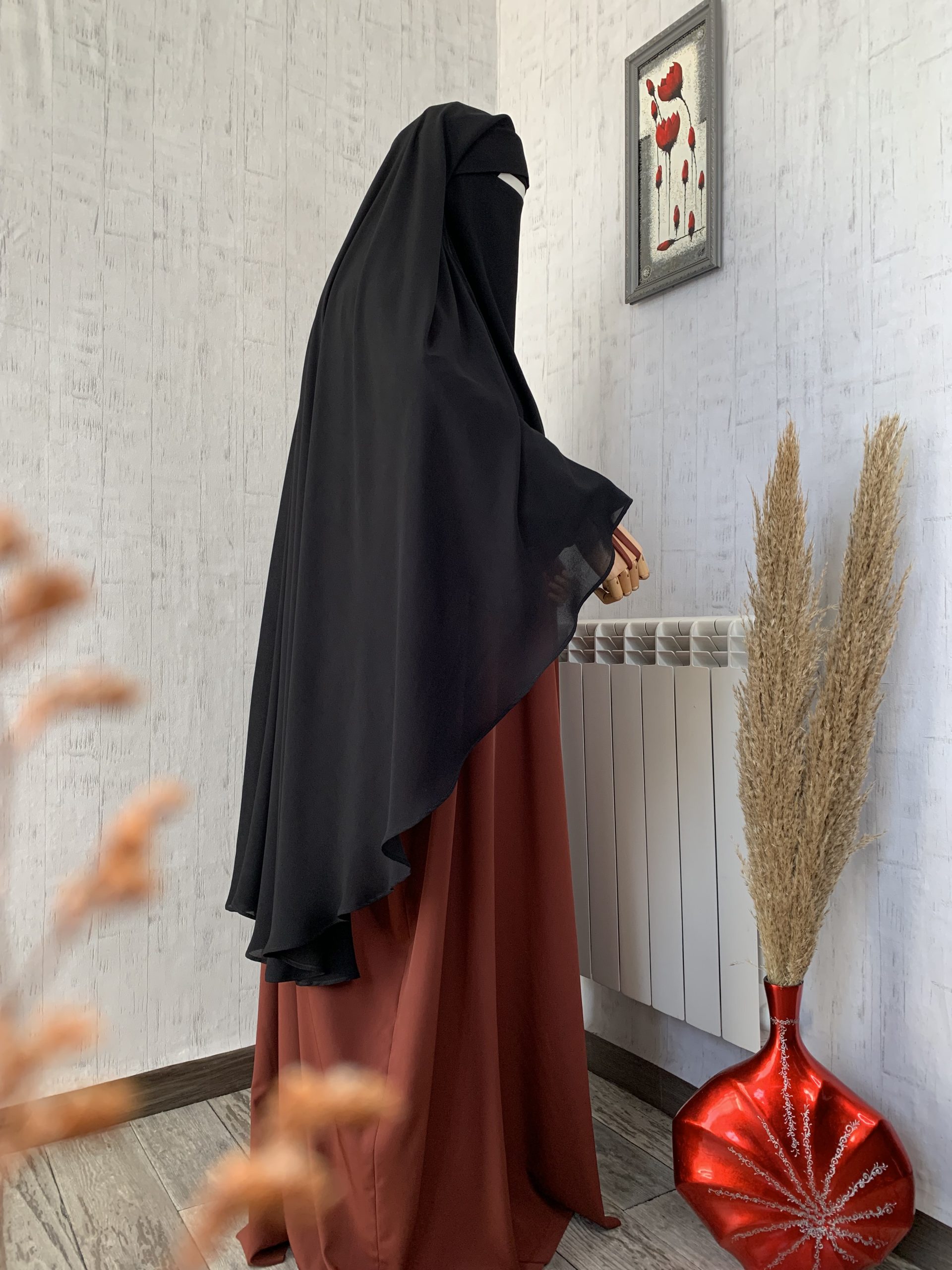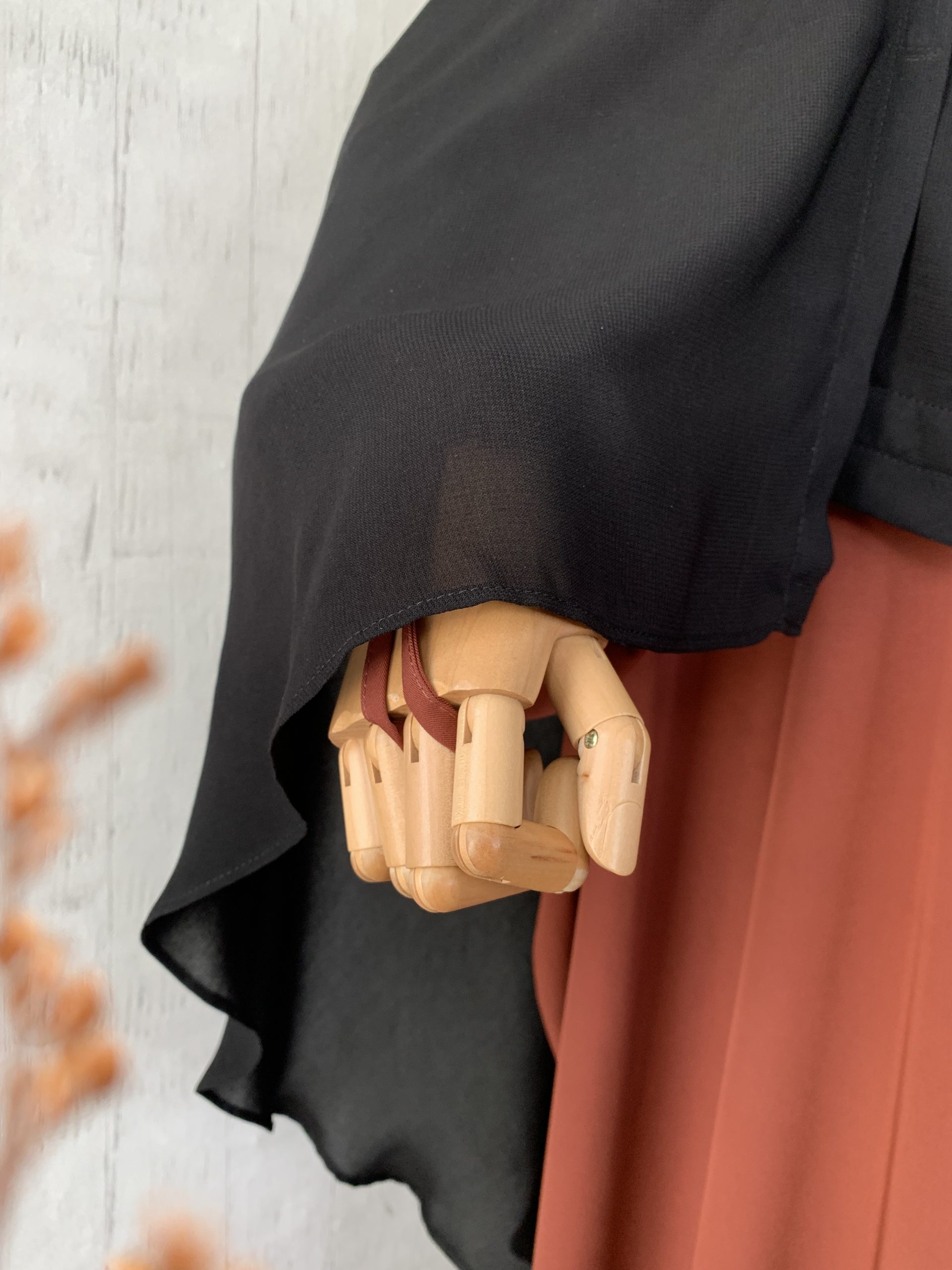 الستار بمروحة واحدة خلفية بشكل دائري من الأسفل و شريط من الأزرار البلا ستسكية في جانبي النقاب
